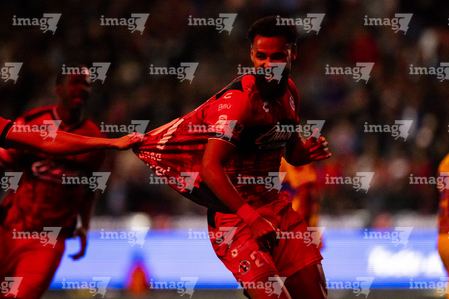 Tijuana, Baja California, 26 de noviembre de 2025. Frank Boya, durante el partido correspondiente a la ida de los Cuartos de Final del torneo Apertura 2025 de la Liga BBVA MX, entre los Xolos de Tijuana y los Tigres de la UANL, realizado en el estadio Caliente. Foto: Imago7/Agustín Reyes