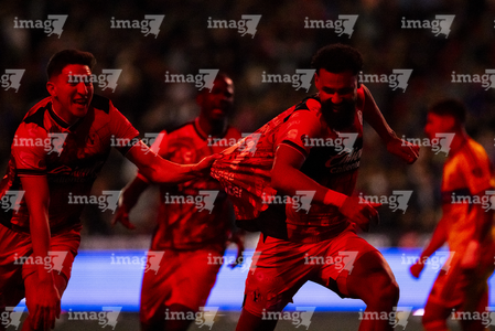 Tijuana, Baja California, 26 de noviembre de 2025. Mourad Daoudi y Kevin Castañeda en festejo de gol, durante el partido correspondiente a la ida de los Cuartos de Final del torneo Apertura 2025 de la Liga BBVA MX, entre los Xolos de Tijuana y los Tigres de la UANL, realizado en el estadio Caliente. Foto: Imago7/Alejandro Gutiérrez Mora