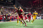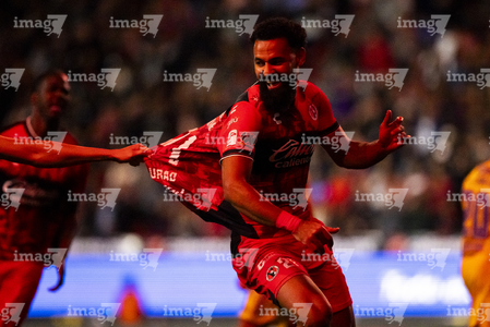 Tijuana, Baja California, 26 de noviembre de 2025. Mourad Daoudi en festejo de gol, durante el partido correspondiente a la ida de los Cuartos de Final del torneo Apertura 2025 de la Liga BBVA MX, entre los Xolos de Tijuana y los Tigres de la UANL, realizado en el estadio Caliente. Foto: Imago7/Alejandro Gutiérrez Mora