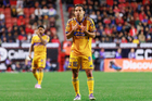Tijuana, Baja California, 26 de noviembre de 2025. Ramiro Árciga en lamento, durante el partido correspondiente a la ida de los Cuartos de Final del torneo Apertura 2025 de la Liga BBVA MX, entre los Xolos de Tijuana y los Tigres de la UANL, realizado en el estadio Caliente. Foto: Imago7/Alejandro Gutiérrez Mora