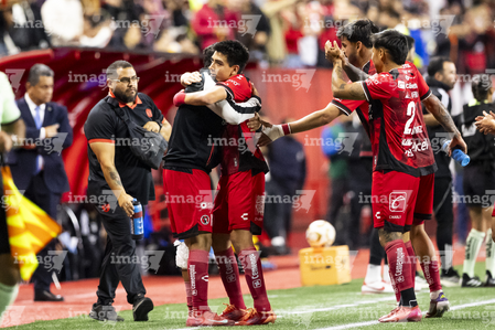 Tijuana, Baja California, 26 de noviembre de 2025. Jugadores de Xolos, durante el partido correspondiente a la ida de los Cuartos de Final del torneo Apertura 2025 de la Liga BBVA MX, entre los Xolos de Tijuana y los Tigres de la UANL, realizado en el estadio Caliente. Foto: Imago7/Agustín Reyes