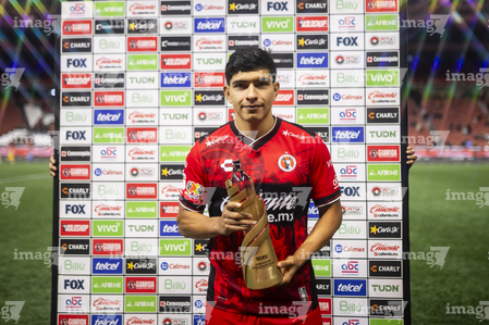 Tijuana, Baja California, 26 de noviembre de 2025. Kevin Castañeda, durante el partido correspondiente a la ida de los Cuartos de Final del torneo Apertura 2025 de la Liga BBVA MX, entre los Xolos de Tijuana y los Tigres de la UANL, realizado en el estadio Caliente. Foto: Imago7/Alejandro Gutiérrez Mora
