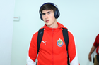Zapopan, Jalisco, 27 de noviembre de 2025. Jesús Orozco Chiquete, durante el partido correspondiente a la ida de los Cuartos de Final del torneo Apertura 2025 de la Liga BBVA MX, entre las Chivas Rayadas del Guadalajara y la Máquina Celeste del Cruz Azul, realizado en el estadio Akron. Foto: Imago7/ Juan Carlos Cubeyro.