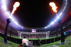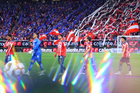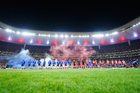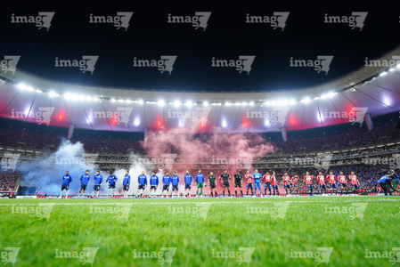 Zapopan, Jalisco, 27 de noviembre de 2025. Protocolo, durante el partido correspondiente a la ida de los Cuartos de Final del torneo Apertura 2025 de la Liga BBVA MX, entre las Chivas Rayadas del Guadalajara y la Máquina Celeste del Cruz Azul, realizado en el estadio Akron. Foto: Imago7/ Jair Terán
