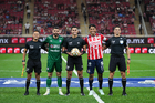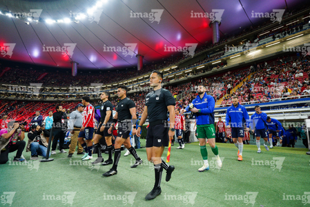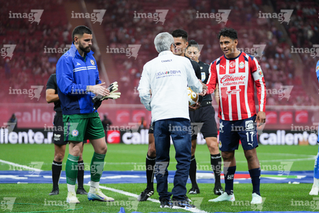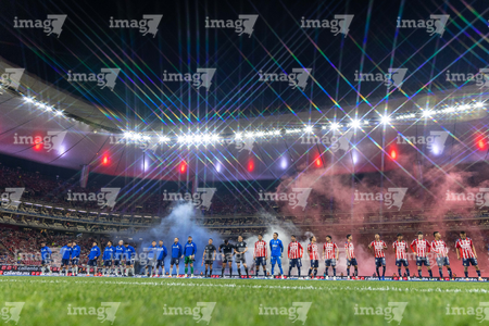 Zapopan, Jalisco, 27 de noviembre de 2025. Protocolo, durante el partido correspondiente a la ida de los Cuartos de Final del torneo Apertura 2025 de la Liga BBVA MX, entre las Chivas Rayadas del Guadalajara y la Máquina Celeste del Cruz Azul, realizado en el estadio Akron. Foto: Imago7/ Hugo Ramirez