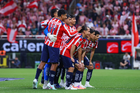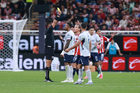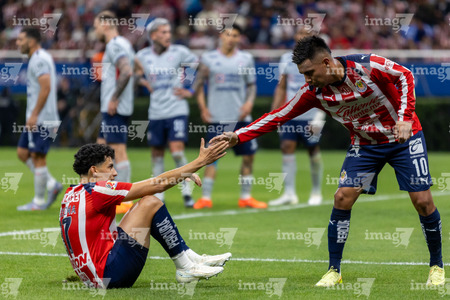 Zapopan, Jalisco, 27 de noviembre de 2025. Jugadores de Chivas, durante el partido correspondiente a la ida de los Cuartos de Final del torneo Apertura 2025 de la Liga BBVA MX, entre las Chivas Rayadas del Guadalajara y la Máquina Celeste del Cruz Azul, realizado en el estadio Akron. Foto: Imago7/ Juan Carlos Cubeyro.