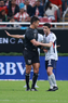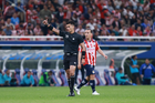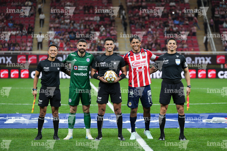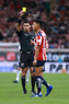 Zapopan, Jalisco, 27 de noviembre de 2025. Guillermo Pacheco Larios, árbitro central y José Ignacio Rivero, durante el partido correspondiente a la ida de los Cuartos de Final del torneo Apertura 2025 de la Liga BBVA MX, entre las Chivas Rayadas del Guadalajara y la Máquina Celeste del Cruz Azul, realizado en el estadio Akron. Foto: Imago7/Cristian Hernandez
