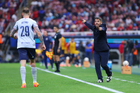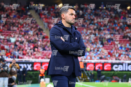 Zapopan, Jalisco, 27 de noviembre de 2025. Nicolás Larcamón, director técnico, durante el partido correspondiente a la ida de los Cuartos de Final del torneo Apertura 2025 de la Liga BBVA MX, entre las Chivas Rayadas del Guadalajara y la Máquina Celeste del Cruz Azul, realizado en el estadio Akron. Foto: Imago7/ Juan Carlos Cubeyro.