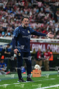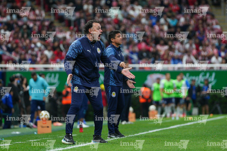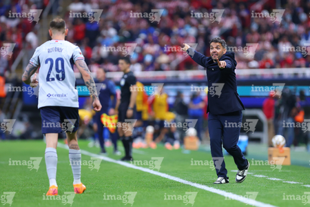 Zapopan, Jalisco, 27 de noviembre de 2025. Gabriel Milito, director técnico, durante el partido correspondiente a la ida de los Cuartos de Final del torneo Apertura 2025 de la Liga BBVA MX, entre las Chivas Rayadas del Guadalajara y la Máquina Celeste del Cruz Azul, realizado en el estadio Akron. Foto: Imago7/ Hugo Ramirez