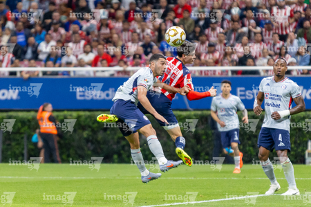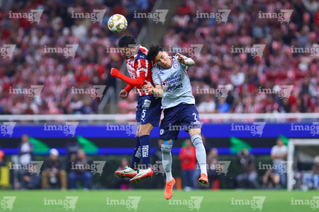 Zapopan, Jalisco, 27 de noviembre de 2025. Willer Ditta y Armando González, durante el partido correspondiente a la ida de los Cuartos de Final del torneo Apertura 2025 de la Liga BBVA MX, entre las Chivas Rayadas del Guadalajara y la Máquina Celeste del Cruz Azul, realizado en el estadio Akron. Foto: Imago7/ Juan Carlos Cubeyro.