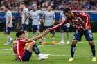 Zapopan, Jalisco, 27 de noviembre de 2025. Bryan González resultó lesionado, durante el partido correspondiente a la ida de los Cuartos de Final del torneo Apertura 2025 de la Liga BBVA MX, entre las Chivas Rayadas del Guadalajara y la Máquina Celeste del Cruz Azul, realizado en el estadio Akron. Foto: Imago7/Cristian Hernandez