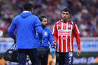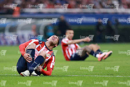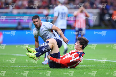Zapopan, Jalisco, 27 de noviembre de 2025. Bryan González resultó lesionado, durante el partido correspondiente a la ida de los Cuartos de Final del torneo Apertura 2025 de la Liga BBVA MX, entre las Chivas Rayadas del Guadalajara y la Máquina Celeste del Cruz Azul, realizado en el estadio Akron. Foto: Imago7/ Juan Carlos Cubeyro.