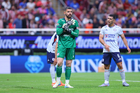 Zapopan, Jalisco, 27 de noviembre de 2025. Ángel Sepúlveda en lamento, durante el partido correspondiente a la ida de los Cuartos de Final del torneo Apertura 2025 de la Liga BBVA MX, entre las Chivas Rayadas del Guadalajara y la Máquina Celeste del Cruz Azul, realizado en el estadio Akron. Foto: Imago7/ Juan Carlos Cubeyro.