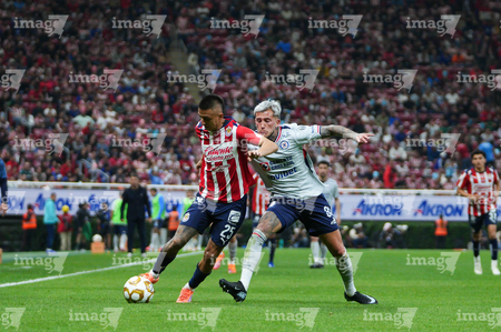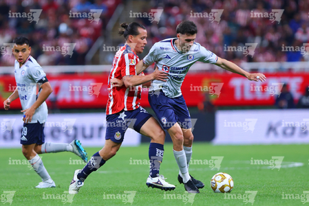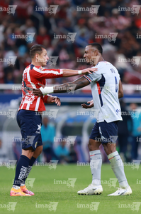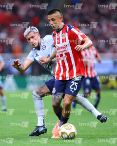 Zapopan, Jalisco, 27 de noviembre de 2025. Gonzalo Piovi y Roberto Alvarado "Piojo", durante el partido correspondiente a la ida de los Cuartos de Final del torneo Apertura 2025 de la Liga BBVA MX, entre las Chivas Rayadas del Guadalajara y la Máquina Celeste del Cruz Azul, realizado en el estadio Akron. Foto: Imago7/ Juan Carlos Cubeyro.