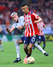 Zapopan, Jalisco, 27 de noviembre de 2025. Armando González, durante el partido correspondiente a la ida de los Cuartos de Final del torneo Apertura 2025 de la Liga BBVA MX, entre las Chivas Rayadas del Guadalajara y la Máquina Celeste del Cruz Azul, realizado en el estadio Akron. Foto: Imago7/ Juan Carlos Cubeyro.