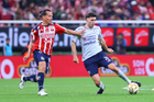 Zapopan, Jalisco, 27 de noviembre de 2025. Fernando González y José Paradela, durante el partido correspondiente a la ida de los Cuartos de Final del torneo Apertura 2025 de la Liga BBVA MX, entre las Chivas Rayadas del Guadalajara y la Máquina Celeste del Cruz Azul, realizado en el estadio Akron. Foto: Imago7/ Juan Carlos Cubeyro.