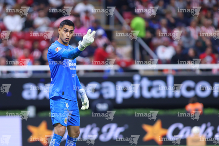 Zapopan, Jalisco, 27 de noviembre de 2025. Andrés Gudiño, durante el partido correspondiente a la ida de los Cuartos de Final del torneo Apertura 2025 de la Liga BBVA MX, entre las Chivas Rayadas del Guadalajara y la Máquina Celeste del Cruz Azul, realizado en el estadio Akron. Foto: Imago7/ Juan Carlos Cubeyro.