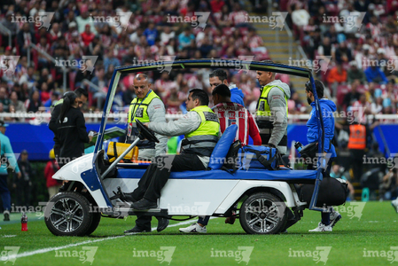 Zapopan, Jalisco, 27 de noviembre de 2025. Bryan González resultó lesionado, durante el partido correspondiente a la ida de los Cuartos de Final del torneo Apertura 2025 de la Liga BBVA MX, entre las Chivas Rayadas del Guadalajara y la Máquina Celeste del Cruz Azul, realizado en el estadio Akron. Foto: Imago7/ Hugo Ramirez