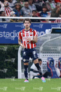 Zapopan, Jalisco, 27 de noviembre de 2025. Hugo Camberos, durante el partido correspondiente a la ida de los Cuartos de Final del torneo Apertura 2025 de la Liga BBVA MX, entre las Chivas Rayadas del Guadalajara y la Máquina Celeste del Cruz Azul, realizado en el estadio Akron. Foto: Imago7/ Juan Carlos Cubeyro.