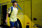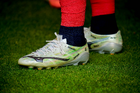 Ciudad de México, 29 de noviembre de 2025. Detalle de Zapatos de futbol Mizuno de Sergio Ramos, durante el partido correspondiente a la vuelta de los Cuartos de Final del torneo Apertura 2025 de la Liga BBVA MX, entre las Águilas del América y los Rayados de Monterrey, realizado en el estadio Ciudad de los Deportes. Foto: Imago7/Diego Padilla