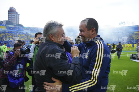 Ciudad de México, 29 de noviembre de 2025. Domenec Torrent y André Jardine, directores tecnicos, durante el partido correspondiente a la vuelta de los Cuartos de Final del torneo Apertura 2025 de la Liga BBVA MX, entre las Águilas del América y los Rayados de Monterrey, realizado en el estadio Ciudad de los Deportes. Foto: Imago7/ Manlio Contreras