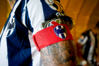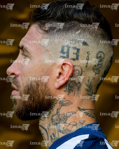 Ciudad de México, 29 de noviembre de 2025. Detalle de gafete de capitán de Sergio Ramos, durante el partido correspondiente a la vuelta de los Cuartos de Final del torneo Apertura 2025 de la Liga BBVA MX, entre las Águilas del América y los Rayados de Monterrey, realizado en el estadio Ciudad de los Deportes. Foto: Imago7/Diego Padilla