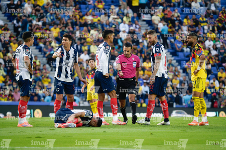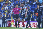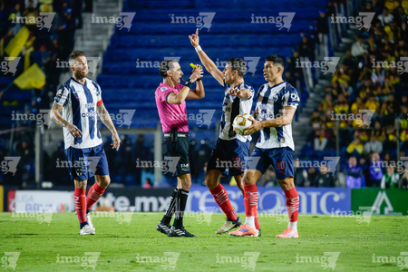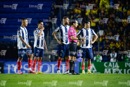 Ciudad de México, 29 de noviembre de 2025. Jugadores de Monterrey en reclamo a César Arturo Ramos Palazuelos, árbitro central, durante el partido correspondiente a la vuelta de los Cuartos de Final del torneo Apertura 2025 de la Liga BBVA MX, entre las Águilas del América y los Rayados de Monterrey, realizado en el estadio Ciudad de los Deportes. Foto: Imago7/Diego Padilla
