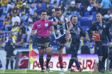 Ciudad de México, 29 de noviembre de 2025. Sergio Ramos resultó lesionado, durante el partido correspondiente a la vuelta de los Cuartos de Final del torneo Apertura 2025 de la Liga BBVA MX, entre las Águilas del América y los Rayados de Monterrey, realizado en el estadio Ciudad de los Deportes. Foto: Imago7/ Alexis Chavez