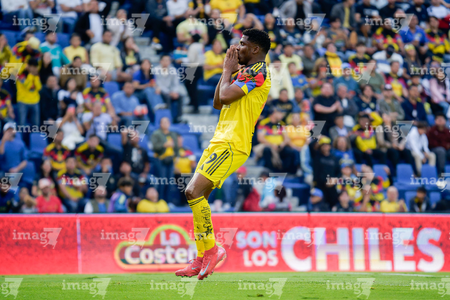 Ciudad de México, 29 de noviembre de 2025. Luis Malagón en festejo de gol anulado, durante el partido correspondiente a la vuelta de los Cuartos de Final del torneo Apertura 2025 de la Liga BBVA MX, entre las Águilas del América y los Rayados de Monterrey, realizado en el estadio Ciudad de los Deportes. Foto: Imago7/ Alexis Chavez