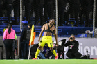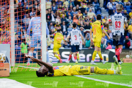 Ciudad de México, 29 de noviembre de 2025. Jesús Manuel Corona "Tecatito" resultó lesionado, durante el partido correspondiente a la vuelta de los Cuartos de Final del torneo Apertura 2025 de la Liga BBVA MX, entre las Águilas del América y los Rayados de Monterrey, realizado en el estadio Ciudad de los Deportes. Foto: Imago7/ Manlio Contreras