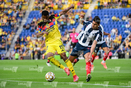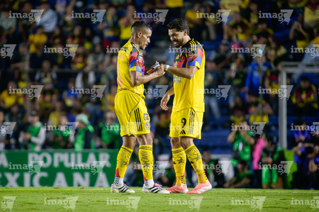 Ciudad de México, 29 de noviembre de 2025. Rodrigo Aguirre y , durante el partido correspondiente a la vuelta de los Cuartos de Final del torneo Apertura 2025 de la Liga BBVA MX, entre las Águilas del América y los Rayados de Monterrey, realizado en el estadio Ciudad de los Deportes. Foto: Imago7/ Alexis Chavez