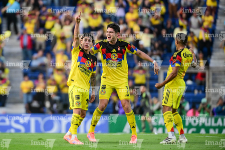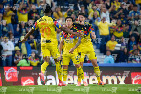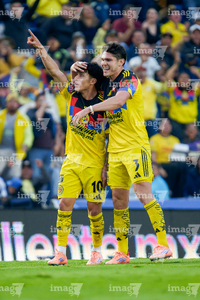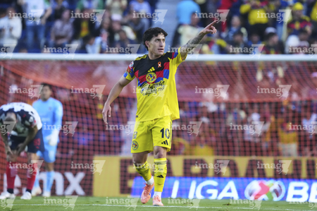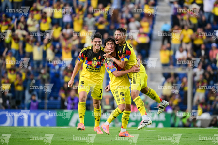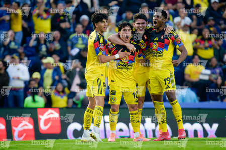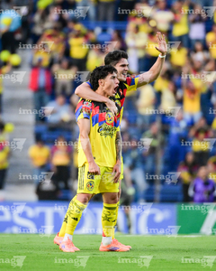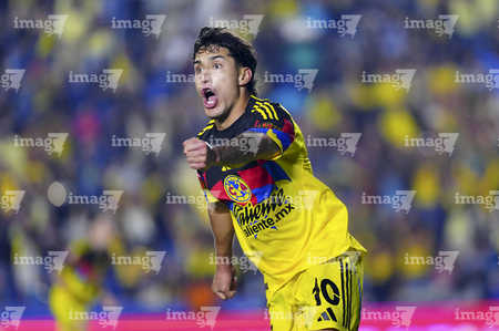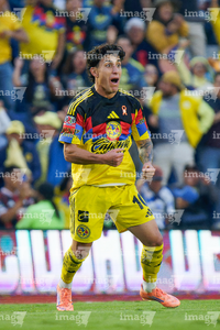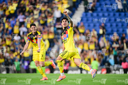 Ciudad de México, 29 de noviembre de 2025. Alejandro Zendejas en festejo de gol, durante el partido correspondiente a la vuelta de los Cuartos de Final del torneo Apertura 2025 de la Liga BBVA MX, entre las Águilas del América y los Rayados de Monterrey, realizado en el estadio Ciudad de los Deportes. Foto: Imago7/ Alexis Chavez