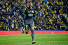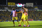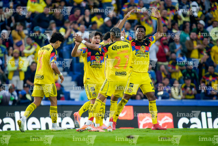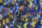 Ciudad de México, 29 de noviembre de 2025. Angel Malagón en festejo de gol, durante el partido correspondiente a la vuelta de los Cuartos de Final del torneo Apertura 2025 de la Liga BBVA MX, entre las Águilas del América y los Rayados de Monterrey, realizado en el estadio Ciudad de los Deportes. Foto: Imago7/ Manlio Contreras