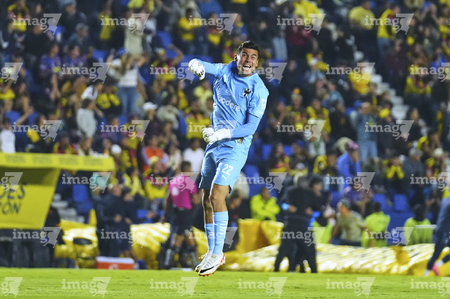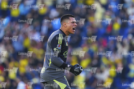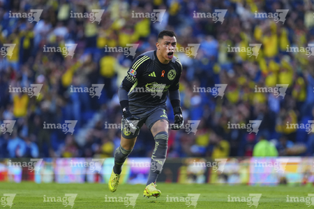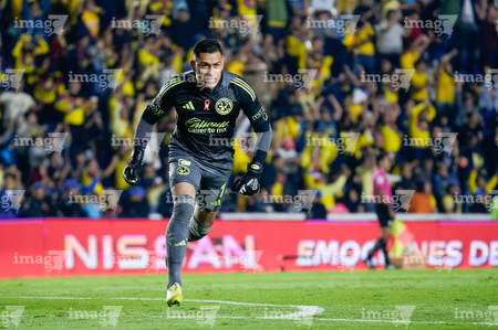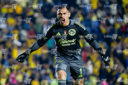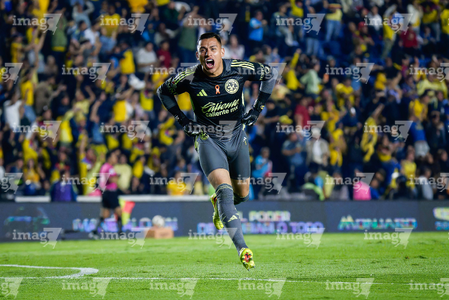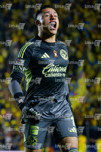 Ciudad de México, 29 de noviembre de 2025. Luis Malagón en festejo, durante el partido correspondiente a la vuelta de los Cuartos de Final del torneo Apertura 2025 de la Liga BBVA MX, entre las Águilas del América y los Rayados de Monterrey, realizado en el estadio Ciudad de los Deportes. Foto: Imago7/ Alexis Chavez