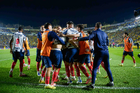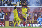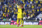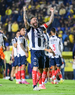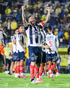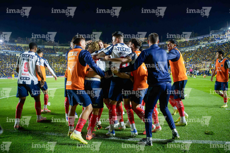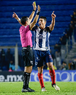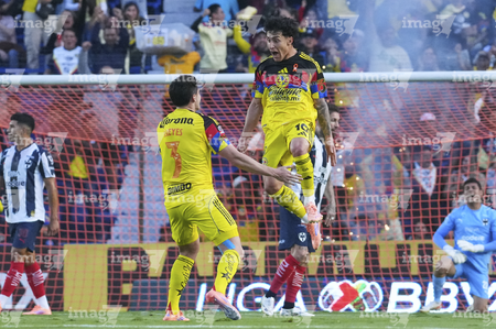 Ciudad de México, 29 de noviembre de 2025. Jugadores de Monterrey en festejo de gol, durante el partido correspondiente a la vuelta de los Cuartos de Final del torneo Apertura 2025 de la Liga BBVA MX, entre las Águilas del América y los Rayados de Monterrey, realizado en el estadio Ciudad de los Deportes. Foto: Imago7/Diego Padilla