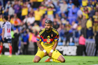 Ciudad de México, 29 de noviembre de 2025. Rodrigo Aguirre en lamento, durante el partido correspondiente a la vuelta de los Cuartos de Final del torneo Apertura 2025 de la Liga BBVA MX, entre las Águilas del América y los Rayados de Monterrey, realizado en el estadio Ciudad de los Deportes. Foto: Imago7/Diego Padilla
