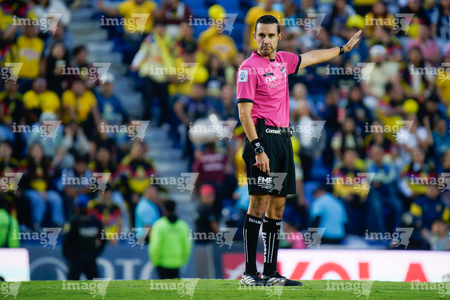 Ciudad de México, 29 de noviembre de 2025. Cesar Arturo Ramos, arbitro central, durante el partido correspondiente a la vuelta de los Cuartos de Final del torneo Apertura 2025 de la Liga BBVA MX, entre las Águilas del América y los Rayados de Monterrey, realizado en el estadio Ciudad de los Deportes. Foto: Imago7/ Manlio Contreras