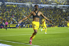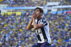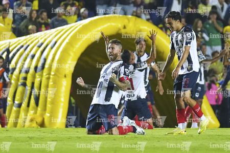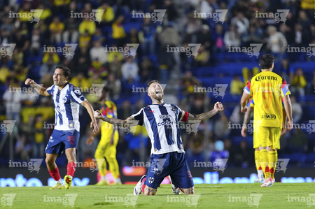 Ciudad de México, 29 de noviembre de 2025. Germán Berterame en festejo de gol, durante el partido correspondiente a la vuelta de los Cuartos de Final del torneo Apertura 2025 de la Liga BBVA MX, entre las Águilas del América y los Rayados de Monterrey, realizado en el estadio Ciudad de los Deportes. Foto: Imago7/Diego Padilla