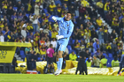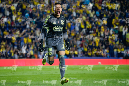 Ciudad de México, 29 de noviembre de 2025. Luis Malagón en festejo de gol, durante el partido correspondiente a la vuelta de los Cuartos de Final del torneo Apertura 2025 de la Liga BBVA MX, entre las Águilas del América y los Rayados de Monterrey, realizado en el estadio Ciudad de los Deportes. Foto: Imago7/Diego Padilla