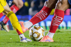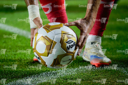 Ciudad de México, 29 de noviembre de 2025. Detalle de Balón de futbol Voit Aereus en manos de Sergio Canales, durante el partido correspondiente a la vuelta de los Cuartos de Final del torneo Apertura 2025 de la Liga BBVA MX, entre las Águilas del América y los Rayados de Monterrey, realizado en el estadio Ciudad de los Deportes. Foto: Imago7/Diego Padilla