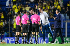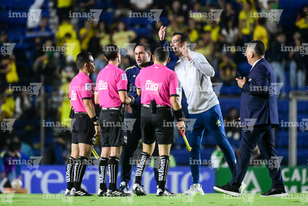 Ciudad de México, 29 de noviembre de 2025. Andre Jardine, director técnico en reclamo, durante el partido correspondiente a la vuelta de los Cuartos de Final del torneo Apertura 2025 de la Liga BBVA MX, entre las Águilas del América y los Rayados de Monterrey, realizado en el estadio Ciudad de los Deportes. Foto: Imago7/ Alexis Chavez
