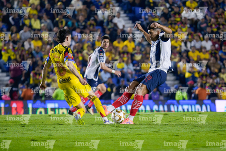 Ciudad de México, 29 de noviembre de 2025. Álvaro Fidalgo y , durante el partido correspondiente a la vuelta de los Cuartos de Final del torneo Apertura 2025 de la Liga BBVA MX, entre las Águilas del América y los Rayados de Monterrey, realizado en el estadio Ciudad de los Deportes. Foto: Imago7/ Manlio Contreras