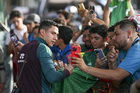 Zapopan, Jalisco 13 de Octubre de 2025. Julian Quiñones firma autografos a la salida al entrenamiento de la selección nacional de México.