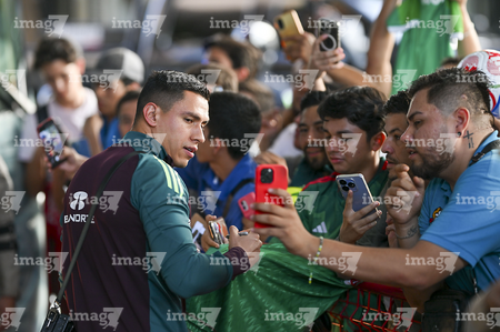 Zapopan, Jalisco 13 de Octubre de 2025. Ángel Malagon firma autografos a la salida al entrenamiento de la selección nacional de México.