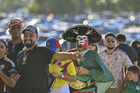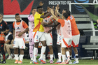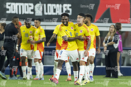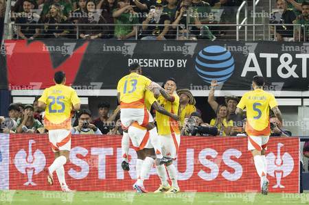 Arlington, Texas, Estados Unidos, 11 de octubre de 2025. Jugadores de Colombia en festejo de gol, durante un partido amistoso del MEXTOUR 2025, entre la Selección Nacional de México y la Selección de Colombia, celebrado en el AT&T Stadium. Foto: Imago7/ Etzel Espinosa