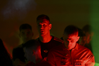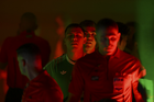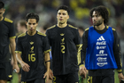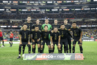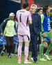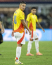 Arlington, Texas, Estados Unidos, 11 de octubre de 2025. Diego Lainez, Jorge Sánchez y César Huerta "Chino" en lamento, durante un partido amistoso del MEXTOUR 2025, entre la Selección Nacional de México y la Selección de Colombia, celebrado en el AT&T Stadium. Foto: Imago7/ Etzel Espinosa