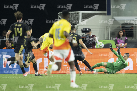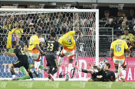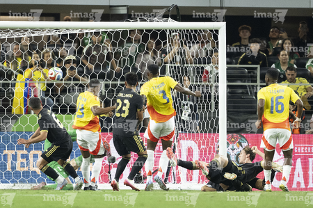 Arlington, Texas, Estados Unidos, 11 de octubre de 2025. Luis Díaz anota gol a Ángel Malagón, durante un partido amistoso del MEXTOUR 2025, entre la Selección Nacional de México y la Selección de Colombia, celebrado en el AT&T Stadium. Foto: Imago7/ Etzel Espinosa