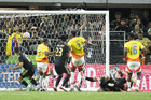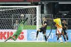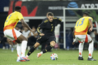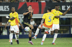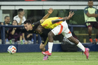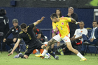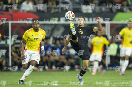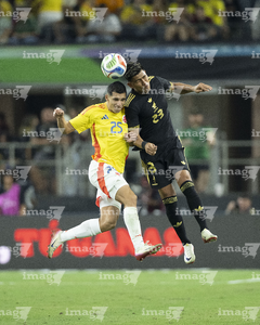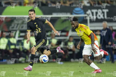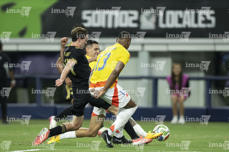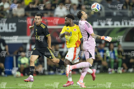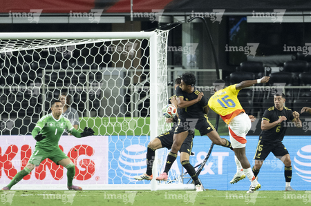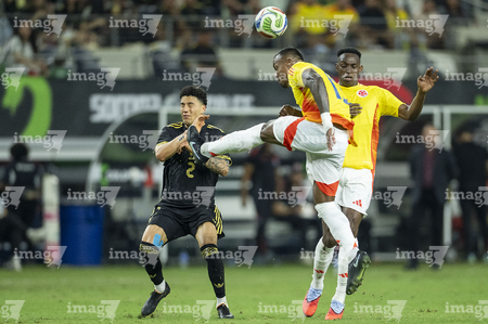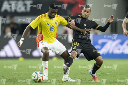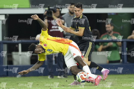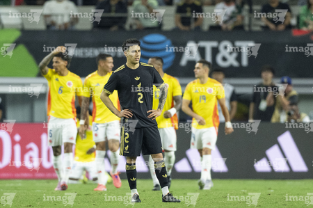 Arlington, Texas, Estados Unidos, 11 de octubre de 2025. Jhon Lucumí anota gol, durante un partido amistoso del MEXTOUR 2025, entre la Selección Nacional de México y la Selección de Colombia, celebrado en el AT&T Stadium. Foto: Imago7/ Etzel Espinosa