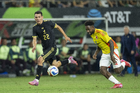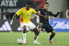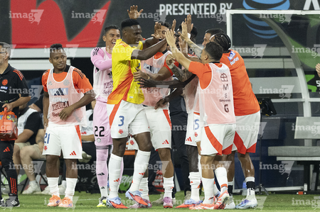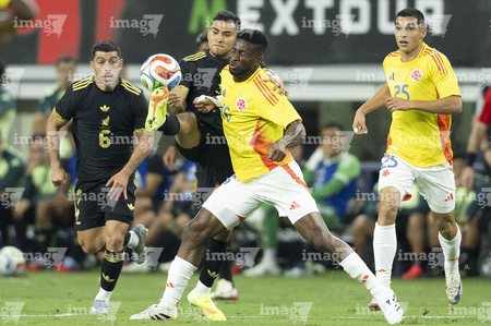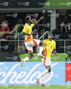 Arlington, Texas, Estados Unidos, 11 de octubre de 2025. Jhon Lucumí en festejo de gol, durante un partido amistoso del MEXTOUR 2025, entre la Selección Nacional de México y la Selección de Colombia, celebrado en el AT&T Stadium. Foto: Imago7/ Etzel Espinosa