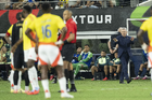 Arlington, Texas, Estados Unidos, 11 de octubre de 2025. Álvaro Angulo y Javier Aguirre, director técnico, durante un partido amistoso del MEXTOUR 2025, entre la Selección Nacional de México y la Selección de Colombia, celebrado en el AT&T Stadium. Foto: Imago7/ Etzel Espinosa